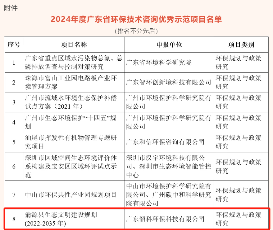 這一年我們齊心協(xié)力,勤練內(nèi)功,專業(yè)知識(shí)愈發(fā)扎實(shí),業(yè)務(wù)技能大幅增進(jìn),既有團(tuán)隊(duì)協(xié)作的默契,又有個(gè)人的成長(zhǎng)的突破,更有收獲成功喜悅。我司編制的《翁源縣生態(tài)文明建設(shè)規(guī)劃(2022-2035年)》、《新豐產(chǎn)業(yè)轉(zhuǎn)移工業(yè)園規(guī)劃環(huán)境影響評(píng)價(jià)》、以及《廣東旭鑫新能源科技有限公司年產(chǎn)650萬(wàn)只蓄電池項(xiàng)目環(huán)境影響評(píng)價(jià)》等3個(gè)項(xiàng)目被評(píng)為2024年度廣東省環(huán)保技術(shù)咨詢優(yōu)秀示范項(xiàng)目。